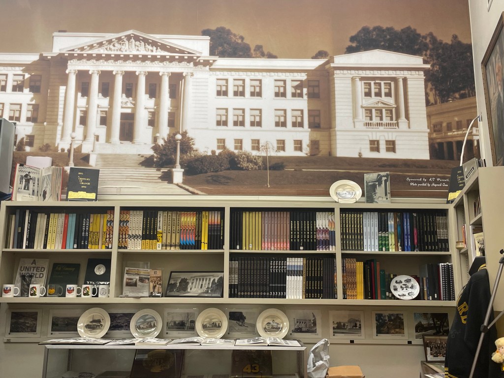 The museum includes yearbooks from as far back as the early 1900s, old diplomas, DTR uniforms, a letterman jacket, photos from past school events, records from music students, and even programs from funerals of students and staff. “I’ve got a closet full of traditional stuff,” Ms. Walker said. “So I rotate things out every now and then.”