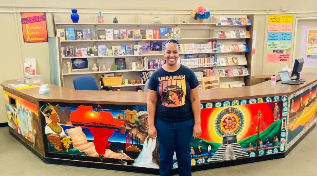 Ms. Walker has been working at Hayward High since January 2015. “I love working in the library because it’s right in the center of campus,” she said. “I get to help students and staff with research, support reading, and make sure our space reflects the diversity of Hayward High.” Her journey in library services began right after college. She started at the Hayward Public Library, then worked at Chabot College in the Daraja Program (now the Umoja Program for African American students). Later, she ran a literacy program at a community center in South Hayward, helping local students and working with supervising interns from Tennyson High.